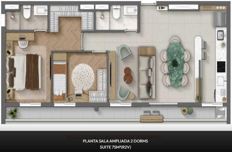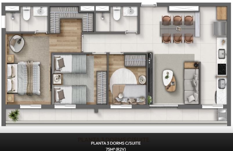 - Área Privativa: 75 m²