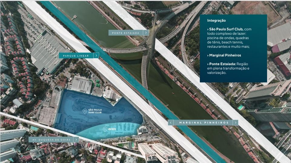 Todas as unidades incluem um guarda-volume de 4,50 m². As plantas são flexíveis, projetadas para favorecer a ventilação cruzada e proporcionar vistas privilegiadas, como a da Ponte Estaiada.