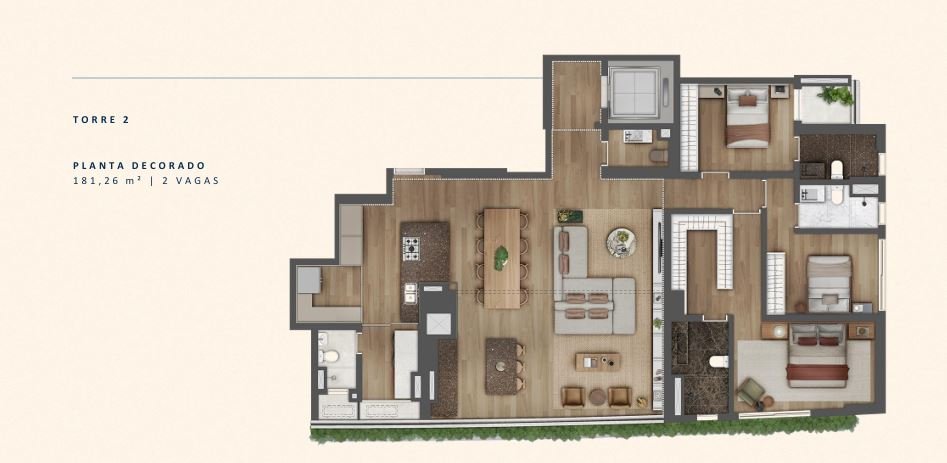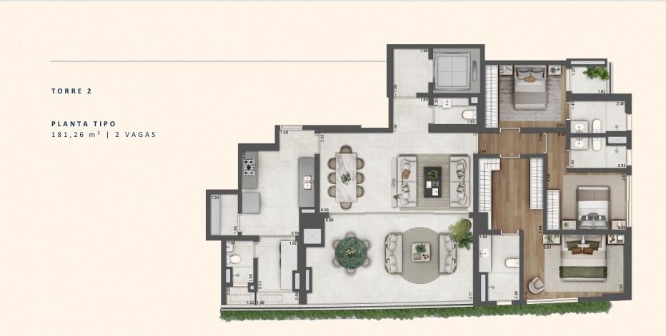 Unidades tipo de 3 suítes (finais 2 e 3): 181,26 m² - 2 vagas.