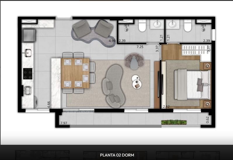 - Dormitórios2 Banheiros1