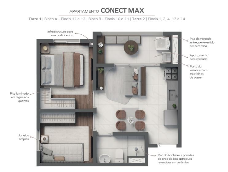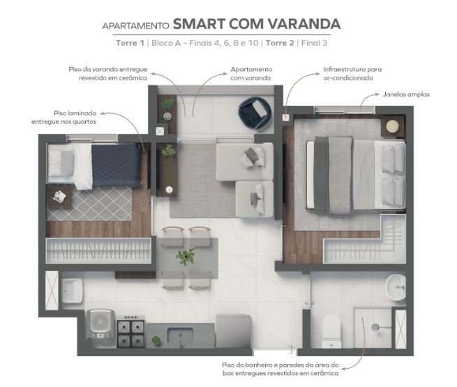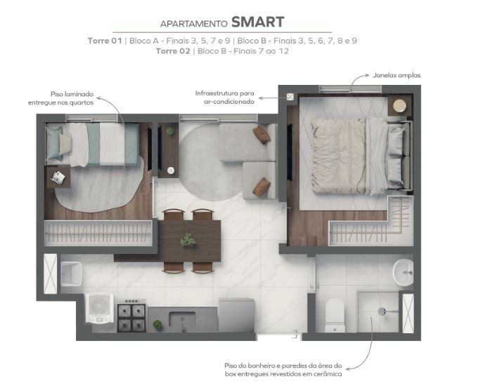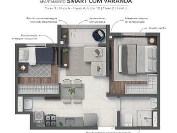 Com um dormitório, sendo uma suíte, e uma planta inteligente que otimiza cada espaço, este imóvel é ideal para quem busca praticidade e conforto. A sacada e a varanda proporcionam um toque de exclusividade.