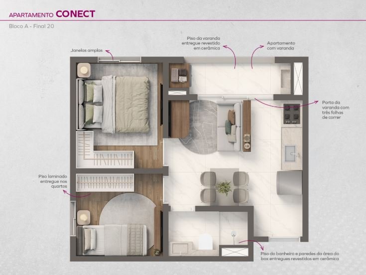 Vivaz Connection Adolfo Pinheiro 1 e 2 quartos OP de varanda