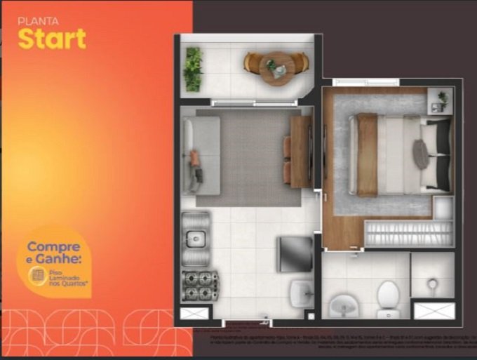 O imóvel apresenta uma planta integrada e bem iluminada, composta por uma sala acolhedora e uma suíte que garante a privacidade necessária para o seu descanso. A presença da varanda amplia a sensação de liberdade, oferecendo um espaço de respiro e ventilação natural, ideal para momentos de relaxamento após um longo dia na capital.