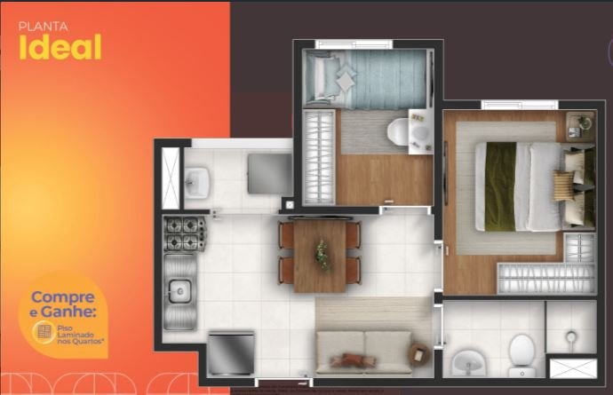 - Dormitórios2 Banheiros1