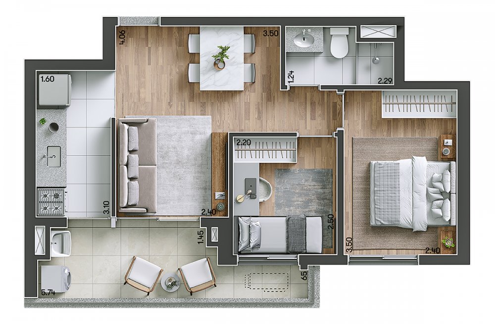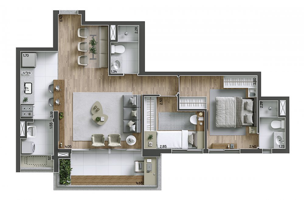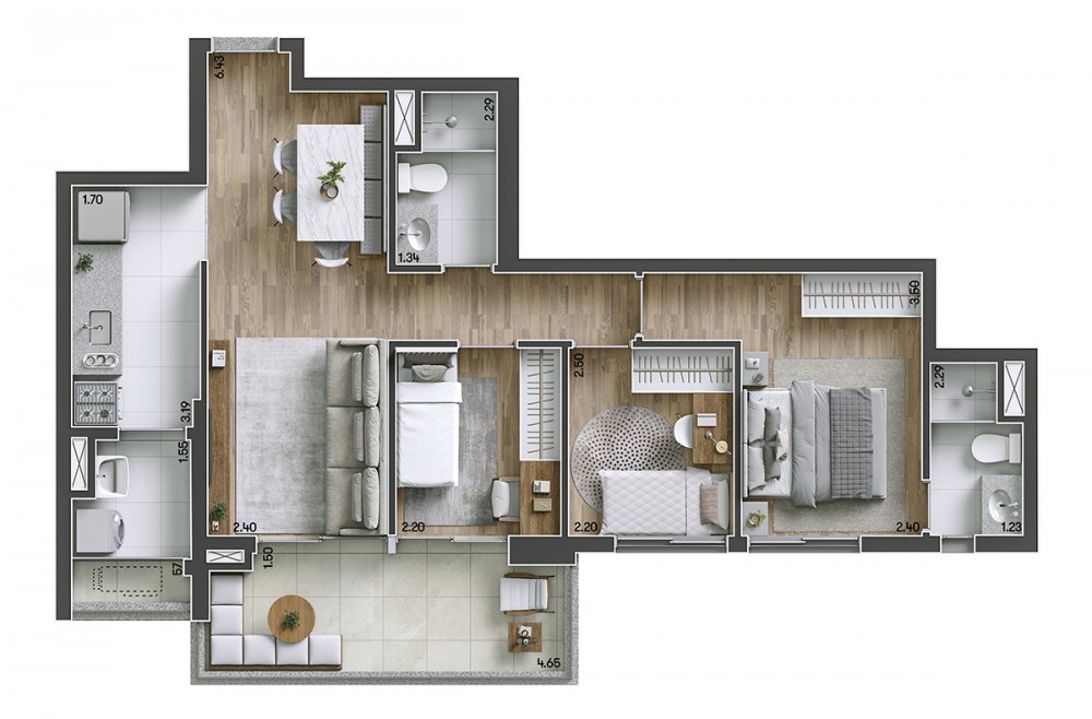 1 A 3 DORMITÓRIOS.