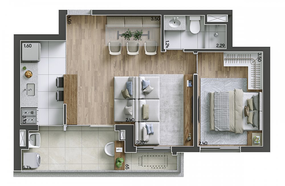 - Área Privativa: 53,24 m²