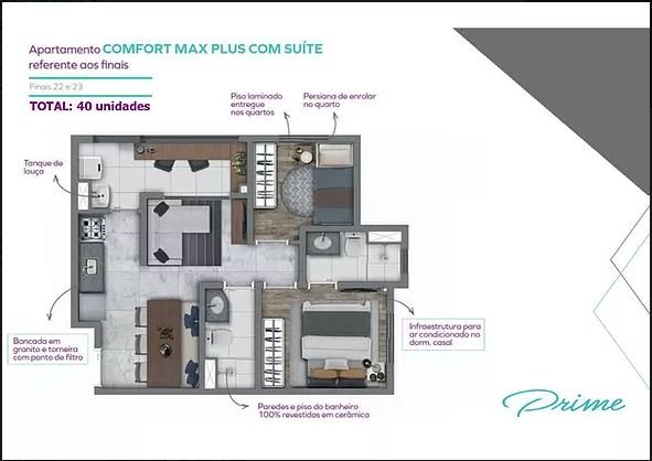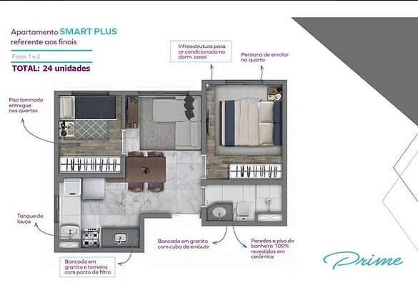 O apartamento do seu sonho chegou em uma região residencial arborizada com fácil acesso a um dos maiores centros empresariais de São Paulo, e próximo a estações de metrô e trem para você ficar 100% conectado. Apartamento de 2 quartos com suíte, opção de vaga e varanda e com infraestrutura para ar condicionado no dormitório casal. Com Plantas inteligentes de 33m², 36 e 47m², apartamentos de 1 e 2 dormitórios com varanda, vaga e lazer completíssimo. E o melhor, tudo isso dentro do Programa Casa verde Amarela (antigo Minha Casa Minha Vida), com todos os benefícios e facilidades que o Programa do Governo oferece, podendo inclusive usar seu FGTS na entrada.