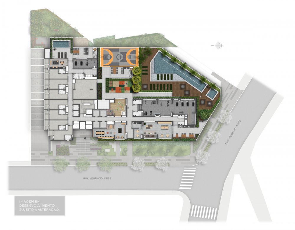 * Quadra poliesportiva, salão de jogos e brinquedoteca.