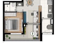 Com 45m² de área privativa muito bem distribuídos, o apartamento conta com 1 dormitório, sala de estar integrada, banheiro social e área de serviço. O diferencial de valorização é acentuado pela presença de uma varanda/sacada e o direito a 1 vaga de garagem, item de alta demanda e liquidez em unidades compactas na capital. A unidade está pronta para morar, o que permite ocupação imediata ou rentabilização rápida através de locação.